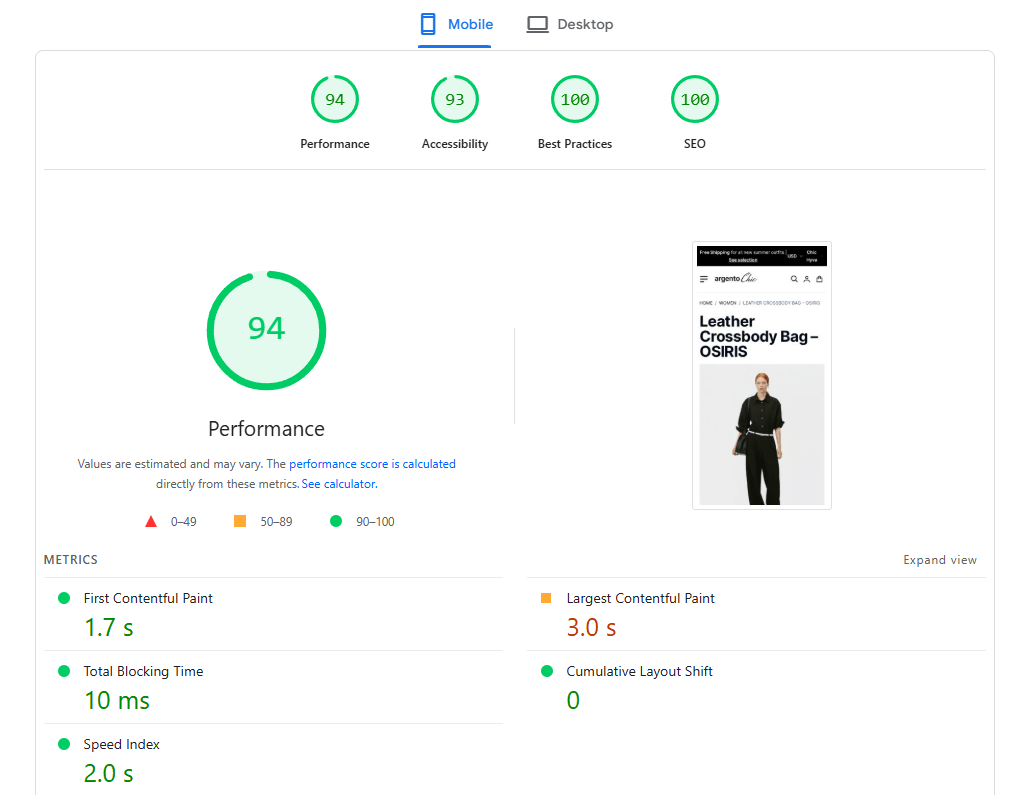 Below we review what makes our new theme valuable for both store owners and developers. It highlights the achieved page speed improvements and reviews the functionality available out of the box. It also explains why Argento Hyvä is a strong addition when it comes to improving user experience and increasing conversion rates. Let’s take a closer look at the key details.