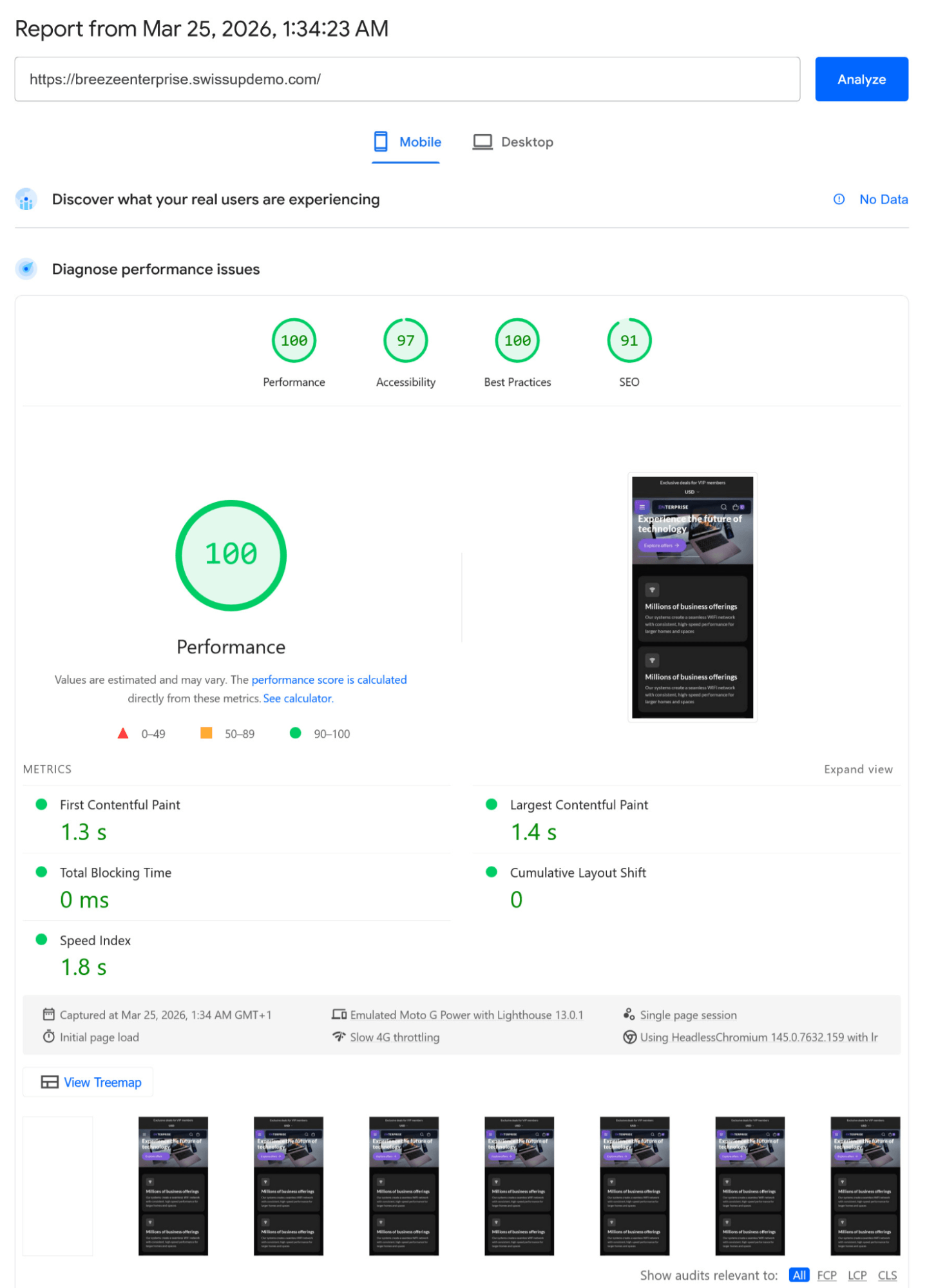 Breeze Enterprise comes with pre-built styles, visual effects, and ready-made content sections. Therefore, you're not starting from a blank canvas but receive a complete foundation to build a polished Magento 2 storefront faster than ever before. Just check page speed results at our demo store.