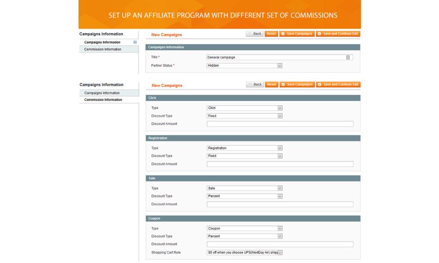 Looking for the most powerful way to promote products online? Suggest visitors join your affiliate program. We came up with a solution that will help you to encourage new affiliates. Start with Affiliate Suite extension. Drive your revenue by rewarding affiliate partners with additional commissions. The reward can be based on four types of activity through the network: click, registration, sale, and coupon.