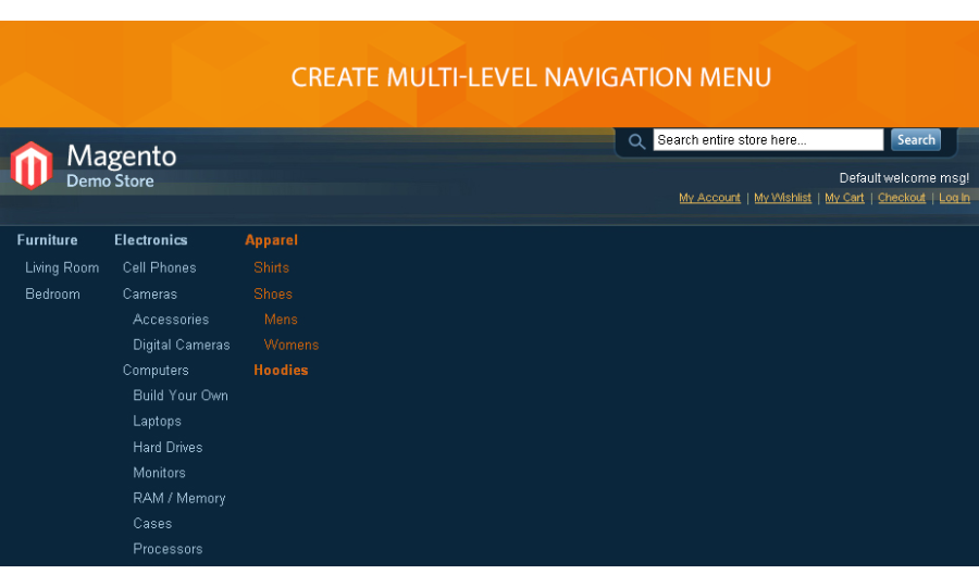 Improve the default Magento navigation drop-down list with Easy Navigation better-constructed menu. Our module will help you to create multi-level navigation tree with sublevels in order to let your customers explore more of your website.