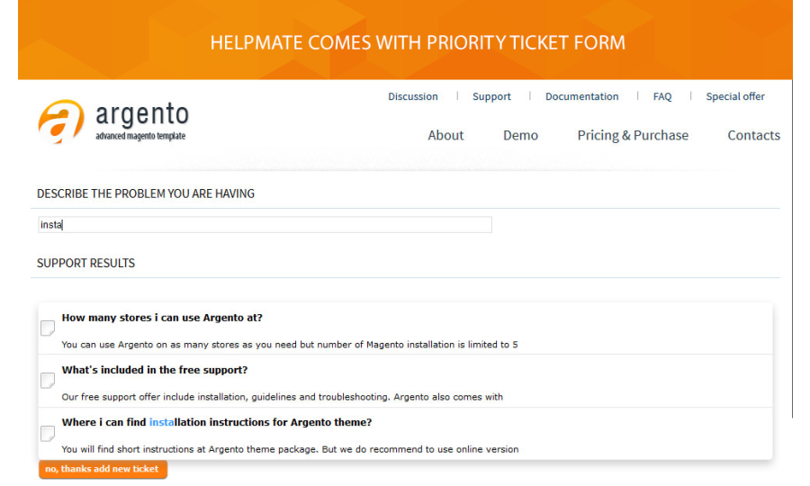 Our help desk Magento extension development was focused on saving both yours and customers time through involving into quick and clear support service. Say No to the support through the e-mailing. Allow users to submit the tickets via the web interface, an email or a customer account. Provide them with helpful knowledge base articles based on already solved issues. Help your customers get quick help and keep in mind the positive user experience only. This way you will considerably reduce the number of support requests.