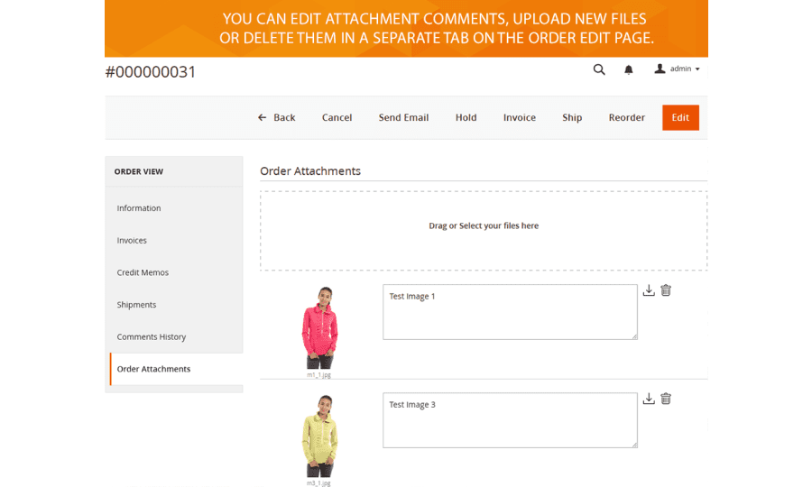 With the module, the user can attach files to order not only on the checkout page but on the order view page as well. All the attachments are protected from public access via generated links. Uploaded files will be shown on Guest Order View and Customer Order View pages. The module allows attaching file links to the email template.