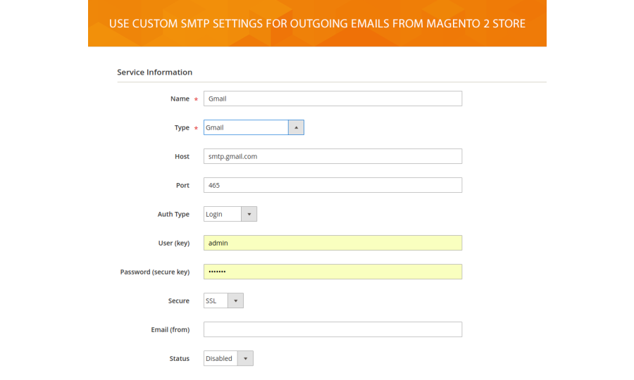 The extension was developed for integration with popular email providers. By using the module you get a complete control of custom SMTP server settings for sending emails. Ultimately, that will help you to bridge the gap with a third party email providers and feel free to work with your favorite email service.