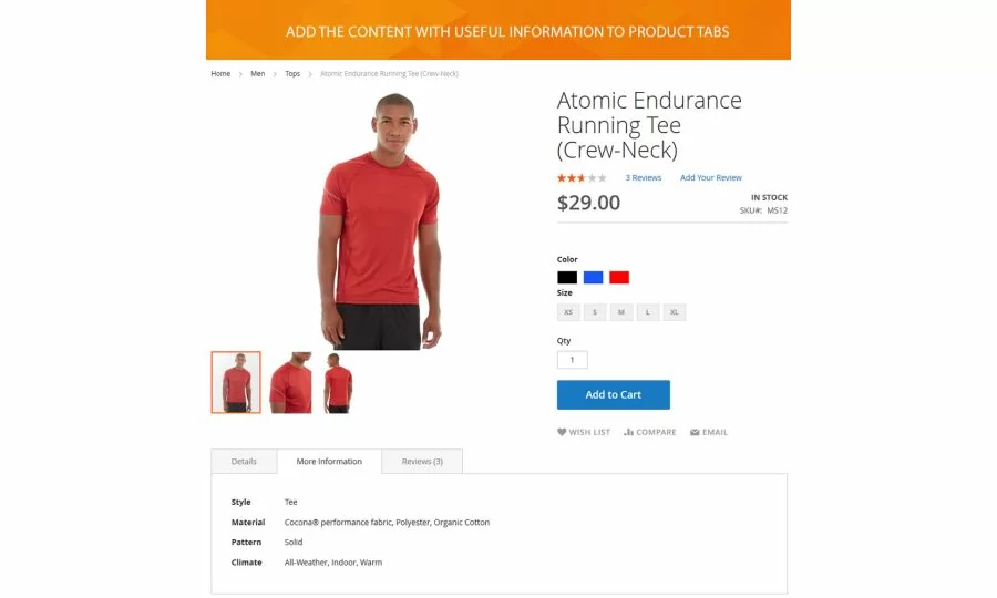• Show product tabs with dynamic content.